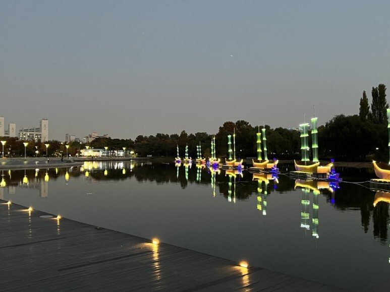밤에 조명을 켜두니 이쁘네요.