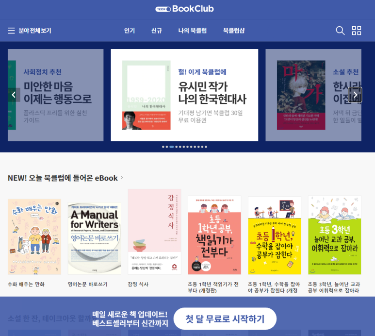 yes24 북클럽에서 월 5500원으로 다양한 책을 볼 수 있습니다.