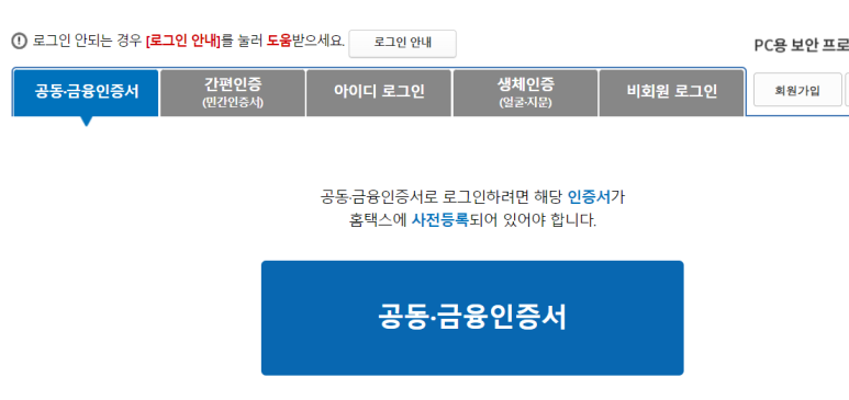 인증서 등록을 못하신 분은 아래 간편인증을 클릭해주세요.