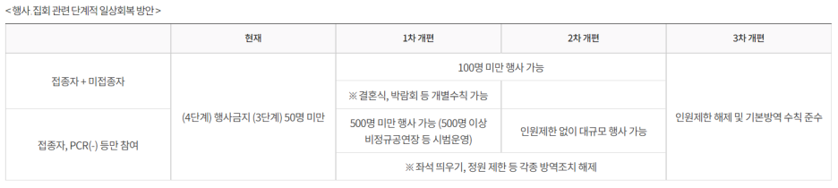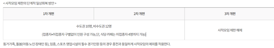 1∼2차 개편 시 수도권은 10명, 비수도권은 12명까지 사적모임 인원 규모를 확대하되,