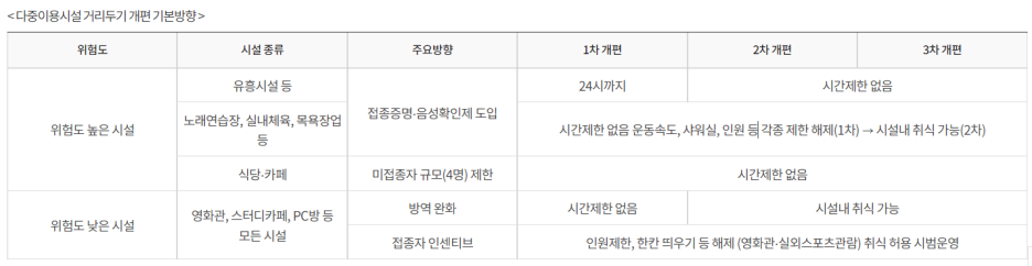 유흥시설은 2차례에 걸쳐 단계적으로 해제한다.