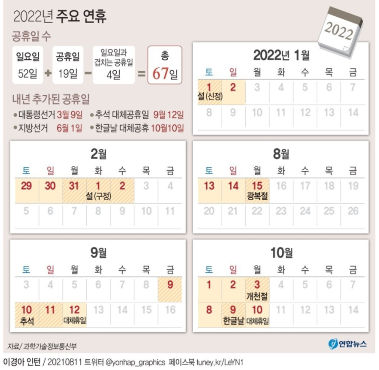 이 맘 때면 내년 공휴일이 궁금해지는데요,