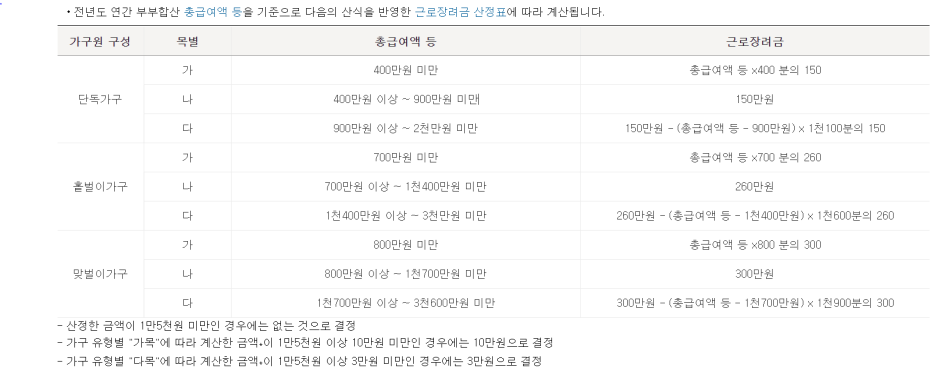 근로를 장려하고 실질소득을 지원해주는 근로 연계형 소득 지원제도입니다.