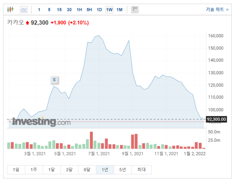 카카오는 미래에 크게 기대되는 회사였다. 그걸 보고 몇 주 안되지만 그래도 투자를 했었다.