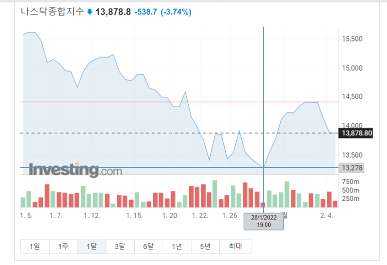 1/28 파월의 발표가 있기까지 나스닥의 변동성을 보시라. 얼마나 파도가 쳤는지 그래프를 보니 알 수가 있다.