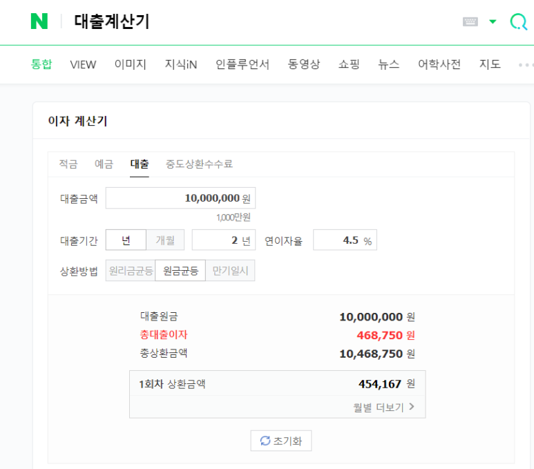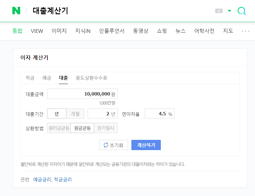 네이버 검색창에 대출계산기를 검색하시면 바로 하단에 나오지요. ㅎ