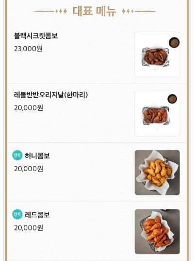 대표메뉴에는 허니 콤보, 레드 콤보가 있지만