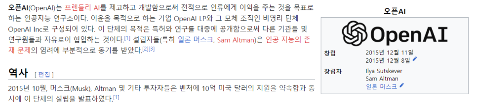 위키백과를 살펴보니 창립자에 일론 머스크도 있는데요,