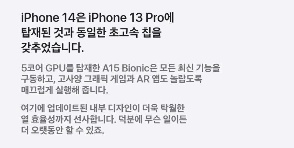 현재 아이폰 13을 사용하신다면 14로 굳이 바꿀 필요는 없을 것 같아요.