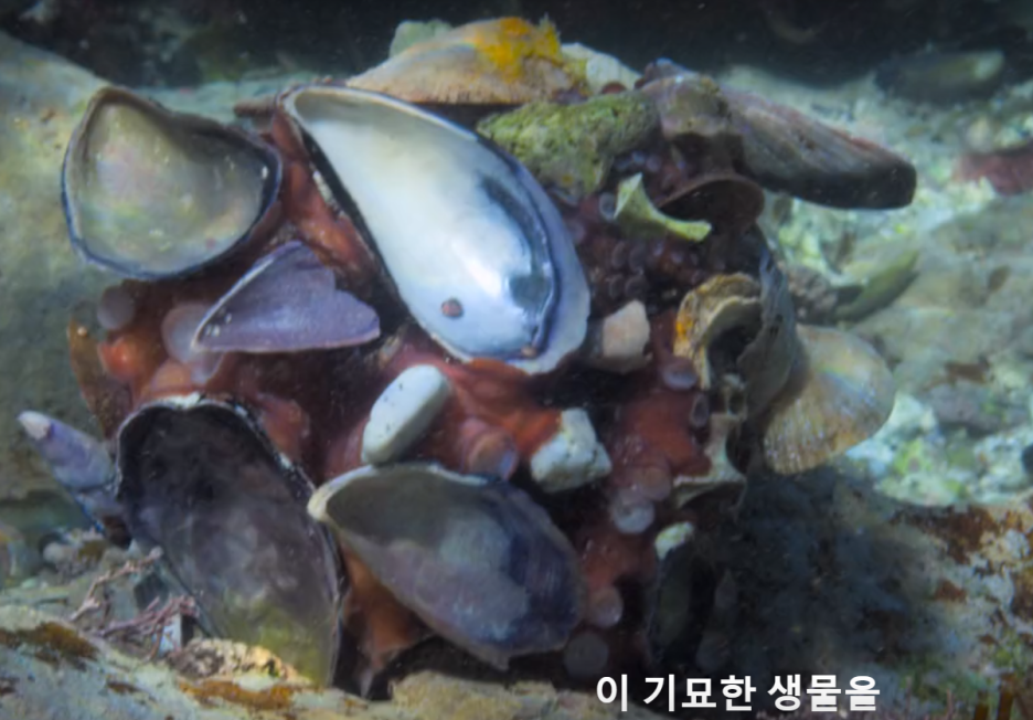 문어는 여러 조개들을 모아서 자신을 가리기도 하고