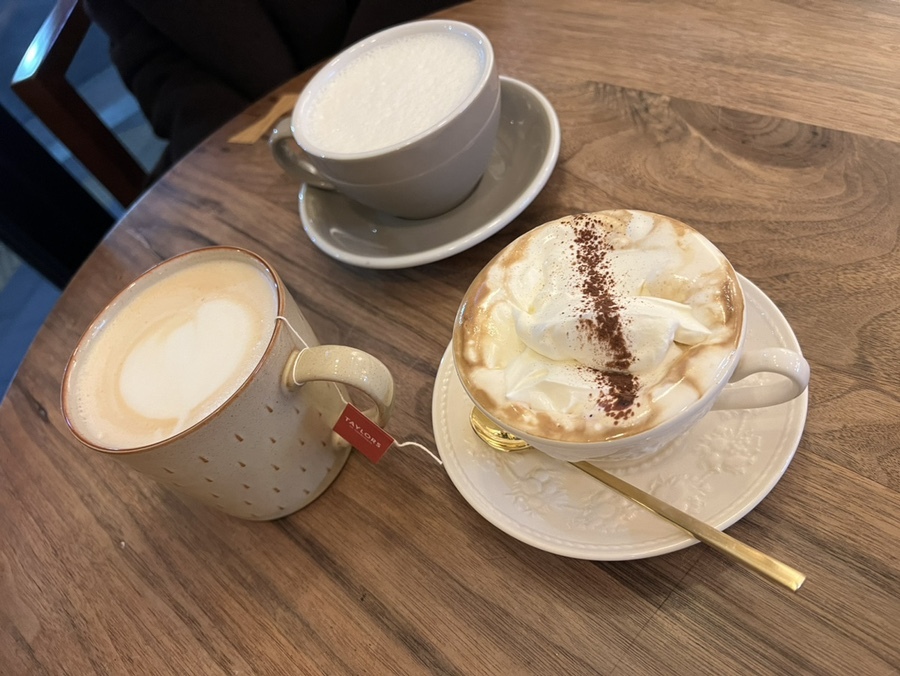 우리는 아인슈페너, 진저라떼, 밀크티를 주문했는데요,