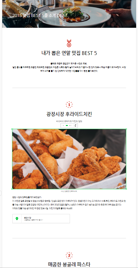 맛집 위치까지 어디에 작성할지 나와있어요.