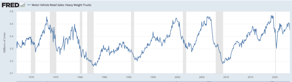 대형트럭의 감소는 아래 사진 처럼 크게 감소해야 경기침체가 발생됩니다.