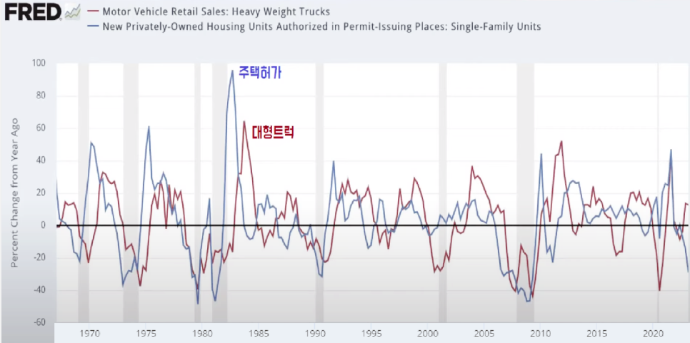 일반적으로는 주택 건설이 감소하면 고용이 감소하고, 대형 트럭판매가 감소되고,