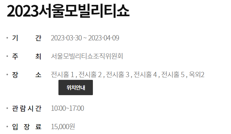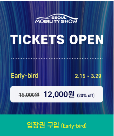 혹시 참가를 원하시는 분은 지금 서울모빌리티쇼 티켓 얼리버드 할인 중입니다.