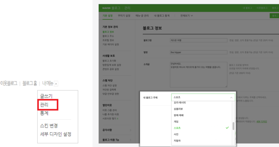 이제 다시 내 메뉴에서 블로그 관리로 가보실까요?