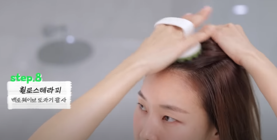 괄사를 이용해서 두피의 뭉친 근육을 풀어주는데요