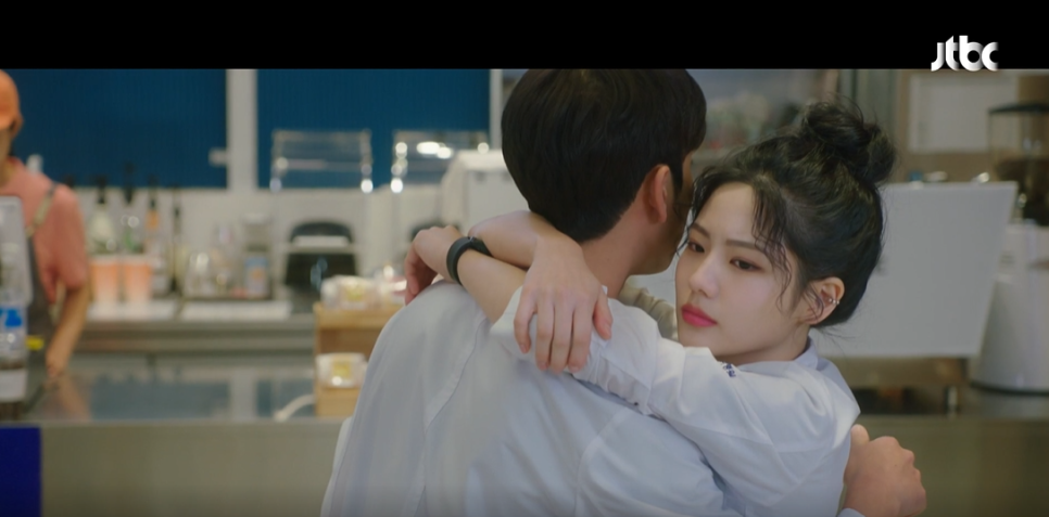 실망과 상처입은 로이킴을 위로하고자 엄정화는 뛰어 가자며 제안한다.
