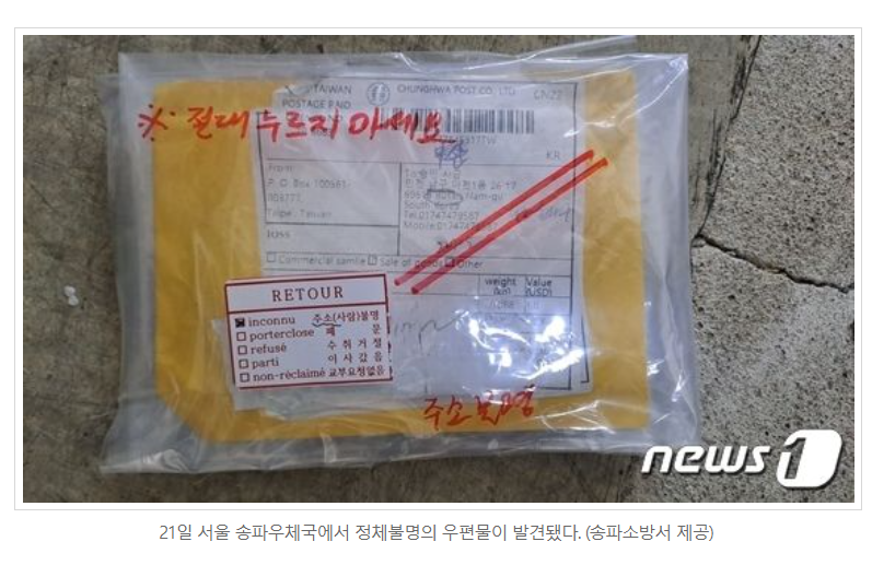 대만, 말레이시아 등에서 발송된 정체불명의 국제 우편물 신고가 어제 하루만 1000건 가까이 신고됐습니다.