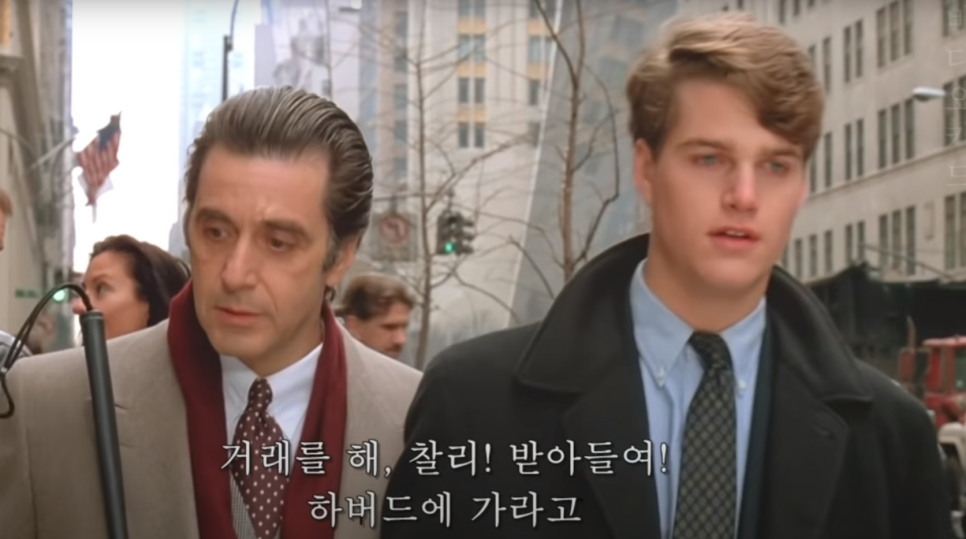 알파치노(프랭크 역)는 시각 장애인이자 은퇴한 미 육군 중령의 후유 장애를 신들린 듯한 연기를 펼칩니다.