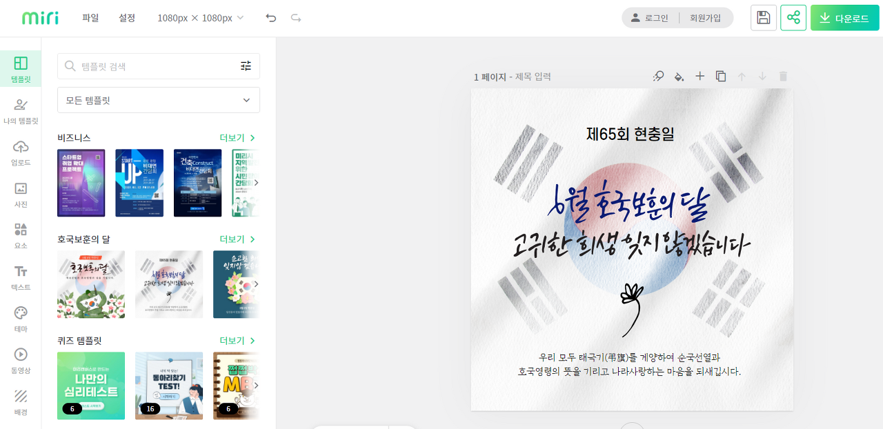템플릿에 글자, 색상만 수정하고 다운로드하면 돼요.
