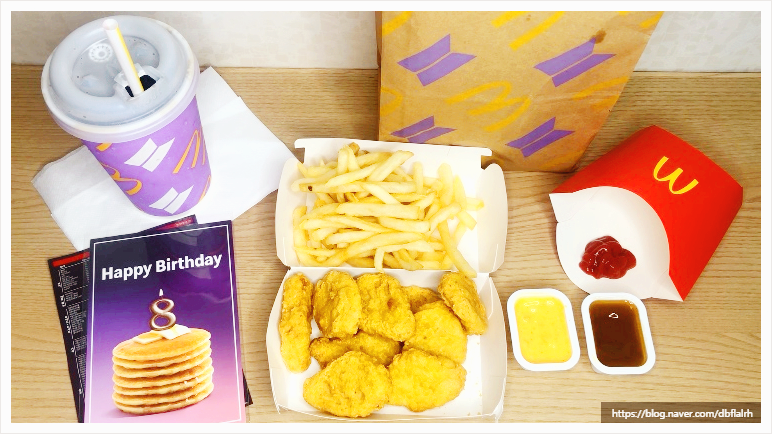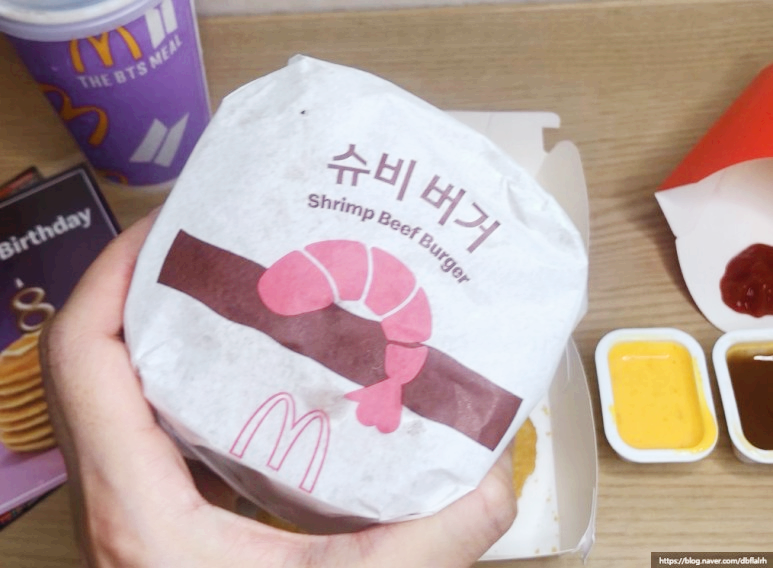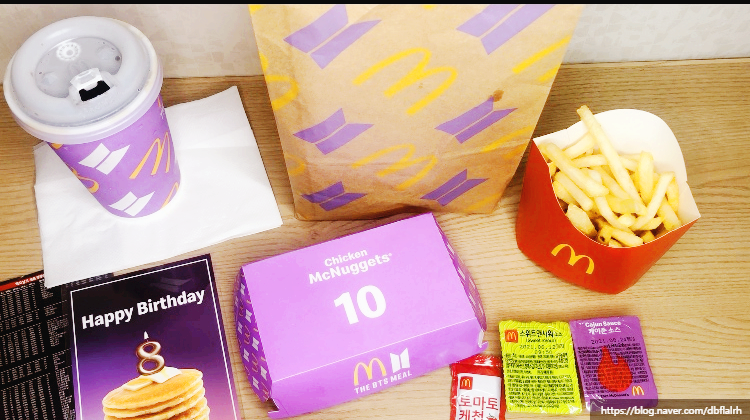 햄버거는 아미 팬들 중 고기를 안 드시는 분들이 있어서 제외했다는 말도 있네요 ㅠㅠ