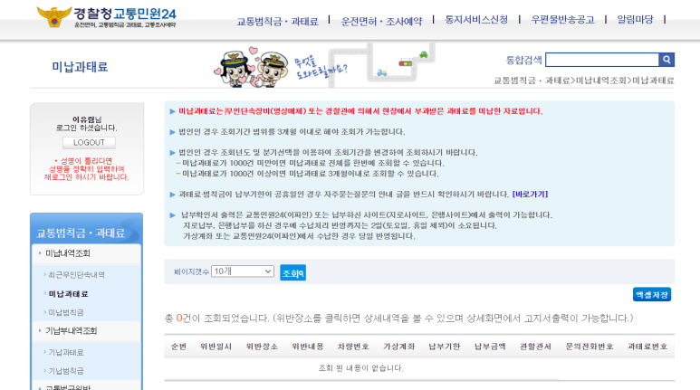 위 싸이트에서 속도위반 조회, 미납과태료, 미납범칙금을 조회할 수 있습니다.