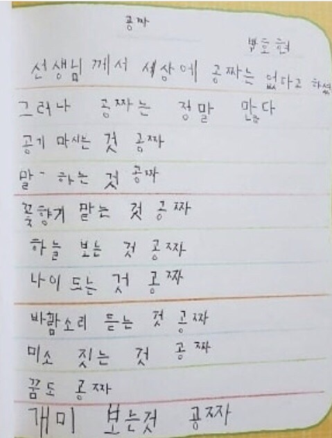 몇 년 전 알려진 초등학생 박호현의 시다.