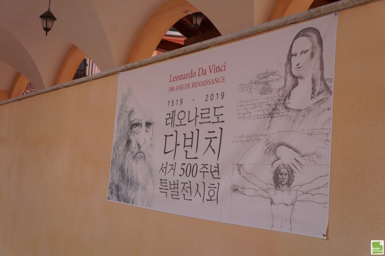 레오나르도 다빈치 특별 전시회도 하고 있어요. 이 현수막이 입구고 아래 계단으로 지하에 내려가면 전시회를 볼 수 있는데, 전 못 봤어요.. ㅠ.ㅠ 입구인 줄 모르고...